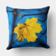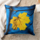 Afbeelding van één enkel geel paarblad op een pruik tegen de donkerblauwe achtergrond. Een-van-een-aardig vierkant goot kussen.