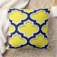 Geel, Navy Blue, Wht Lg Moroccan Quatrefoil #3DS Kussen