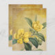 Gele dillenia illustratie op een oude papieren achtergrond met wenken van gele waterverf. Dit bloemetjesboek komt overeen met het Collectie van de Rustic Floral Journal en is helder genoeg voor gebruik in het zomerplakboek, maar ook bijtend en warm voor dagboeken en projecten die over de herfst gaan. De achterkant van het papier heeft hetzelfde ontwerp. Deze veelzijdige artikelen maken prachtige scrapbook achtergronden, en kunnen worden toegevoegd aan junkdagboeken, collages en bijtende fotoalbums.