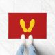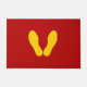 GEEL VOETPRINES OP RODE DEURMAT