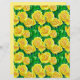 Papier in een patroon van waterverf rozen, in tinten van diep tot bleek botergeel, tegen een achtergrond van groene bladeren