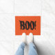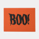 Halloween deurmat getoond met een spooky Boo! druk op een oranje achtergrond. Pas deze mat aan of koop zoals nu.