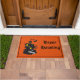 Deurmat afgebeeld met een oranje achtergrond en een Halloween spookhuis print. Pas deze mat aan of koop zoals het is.