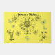 Drie prachtig geïllustreerde bloemen op een zachte gele achtergrond. Plus kleine lichtblauwe vlinders. Voeg je eigen woorden toe voor maatwerk.