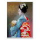Impressionistisch schilderij van Japanse geisha in opleiding (maiko.) Ze draagt een blauwe kimono met een rode sash.