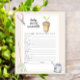 "Een beetje spruit is onderweg." Vier het met dit spruit thema baby shower feest! Waterverf spruit in een pot, een hark, een gieter en snoeischaar (schaar). Antwoorden: HUNKEREN, HUILEN, FOPSPEEN, FLES, NACHTLAMPJE, SLAAPZAKJE, KINDERWAGEN, RUGGENGRAAT, BOERDERIJ, KINDERSTOEL, LUIERZAK, ZWENDEL