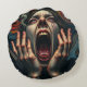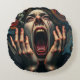 Dit AI-afbeelding vangt het angstige gezicht van een vrouw, verwrongen in een bloedstollende schreeuw, omringd door fantastische elementen in een duistere, humeurige en verontrustende esthetiek die doet denken aan fantasieconceptkunst en de werken van Edvard Munch.