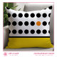 Verfris uw binnen- of buitenruimtes met dit leuke werpkussen met speelse zwart-witte stippen, gedurfde gele kleurblokkering en een onverwacht vleugje sinaasappel. Dit ontwerp is modern en minimalistisch, en het zal een leuke toevoeging zijn aan een woonkamer, slaapkamer, veranda of patio. Het is ook een geweldig housewarming cadeau voor nieuwe huiseigenaren.