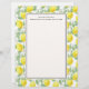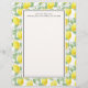 Letterkop, ontworpen met gele citroenen en groene bladeren, in een repetitief patroon. Gelaagd over bovenkant is een wit lijst voor gemakkelijk leesbaar schrijven. Personaliseer met een naam en een adres of een andere tekst.