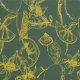 Gele Lemon Sketch op Donkergroen Behang