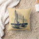 Een geel en blauw zeilschip met een oud schilderontwerp.