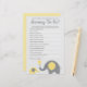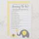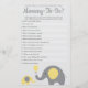 Test wie het beste van mama weet met onze gele en grijze olifant met de titel "Hoe goed ken je dat mama moet zijn" quizspel. De gasten zullen de blanco's invullen om een paar basisvragen over de nieuwe moeder te beantwoorden. Wie de beste wint krijgt!