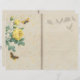 gele rozenafbeelding met gele vlinders en vage vogels op een tak. De achtergrond heeft een verouderde papierstijl met 'er nauwelijks' bloempatroon en zwakke regels voor je gedachten, notities en aspiraties. De achterkant van het papier heeft een gewoon oude papieren stijl. Dit ontwerp wordt gecreeerd in een dubbele pagina uitgespreide stijl, zodat moet u eenvoudig aan creëer twee klaar gemaakte pagina's vouwen. Deze papieren zijn geweldig voor het slopen, collage en voor het toevoegen aan je junkdagboeken. Veel andere design zijn beschikbaar in onze Zazzle-winkel.
