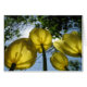 Naar boven kijkend naar de blauwe hemel van onder gele tulpen.