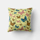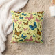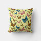 Kute en girale kussens met een vlinderafbeelding van roze, blauw en geel met groen tot een patroon gemaakt. De gele achtergrondkleur kan worden bewerkt.