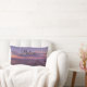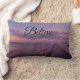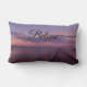 Op een paarse zonsondergang aan het strand staat het woord geloof geschreven in cursief