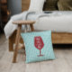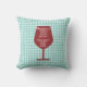 Een vun teelbalkontwerp voor wijnliefhebbers kenmerkt rood wijnglas met een grappig citaat dat luidt: "Geluk komt van innerlijke vrede. Binnenvrede komt van wijn" op de blauwe en witte achtergrond van gingham.