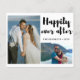 Gelukkig ooit na bruiloft aankondiging kaart gepersonaliseerd met 2 foto's en dank u bericht.