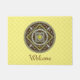 Dit mandala was ontworpen voor het zodische bord, Gemini, dat een citriene steen in het midden weergeeft, omringd door elementen die het teken weergeven, zoals het symbool voor het teken, de constellatie, het alchemische symbool voor Air, alsook filigreewijnstokken en weven die het allemaal in een stevig afbeelding wikkelen in tinten van geel, zilver en bruin. Pas de tekst op dit model aan met uw eigen voorkeurgroet of verwijder het volledig om een unieke decoratie voor uw ingang te maken.
