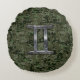 Gemini Zodiac Sign on Green Digital Camo Rond Kussen