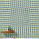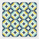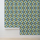 Dit moderne patroon uit het midden van de eeuw kenmerkt goud en blauwe vormen.