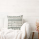 Dit kussen toont een ingewikkeld geometrisch patroon op een crèmekleurige achtergrond, met donkergroene design. De symmetrische opstelling van diamanten, driehoeken en lijnen creëer is een visueel opvallende en gestructureerde esthetiek. De herhalende horizontale rijen voegen diepte en karakter toe aan het kussen, waardoor het een uitstekend decoratief stuk is voor een moderne of bohemien-stijl ruimte.