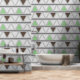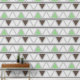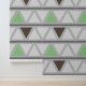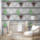 Dit behangontwerp heeft een modern en geometrisch patroon van driehoeken. De driehoeken zijn gerangschikt in horizontale rijen, afwisselend tussen tinten groen, bruin en lichtgrijs, waardoor een visueel aangename en evenwichtige look wordt gecreëerd. De achtergrond is een zachte, lichtgrijze, die de gedempte tonen van de driehoeken aanvult. Het herhalende geometrische patroon brengt een gevoel van orde en verfijning aan de ruimte, die tot het een uitstekende keus voor een eigentijdse en modieuze ruimte maken. Dit behang is perfect voor slaapkamers, woonkamers, of elke ruimte die zou kunnen profiteren van een vleugje moderne elegantie.