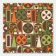 Dit originele, retro jaren 50 / jaren 60 stijl mid-mod abstracte geometrische patroonbehang is gemaakt van driehoeken, vierkanten, rechthoeken en cirkels. Het is ontworpen in tinten van sinaasappel, groen en crème op een bruine achtergrond. Dit patroon herhaalt zich naadloos. Het is voor fans van mideeuwse moderne kunst. Voeg een vleugje antiek, mod elegantie toe met dit coole minimalistische motief.