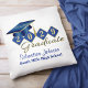 Geef je afstudeerder een speciaal herdenkingsgeschenk met dit gepersonaliseerde blauw en gouden afstuderen kussen met pet, afstudeerjaar, naam en school. Achterkant met blauwe geborstelde metalen achtergrond. Eenvoudig te personaliseren met aangepaste opties. Gebruik de knop 'Personaliseren' om het product aan te passen of tekst toe te voegen.