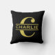 Gepersonaliseerd monogram en naam zwart en goud kussen