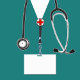 Creative verpleegkundige afstuderen geschenktas ontwerp met blauwgroen ziekenhuisscrubs, stethoscoop en een grote proficiat. Bewerk tekst om de naam van het afstudeerder van de verpleegschool toe te voegen.