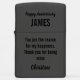 Vier je liefde met deze aangepaste sms-bericht zwarte mat Zippo aansteker, met een oprechte verjaardag bericht. Een perfect cadeau voor je man, vriend of partner, deze slanke en stijlvolle aansteker is zowel sentimenteel als praktisch. Of het nu gaat om een mijlpaaljubileum of gewoon om je waardering te shows, deze tijdloze herinnering is een unieke manier om je liefde en dankbaarheid te uiten.