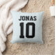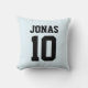 Gepersonaliseerde aangepaste naam en nummer of monogram met het afbeelding van uw favoriete atletische jersey sportteam T-shirt of vlag Sierkussen. Varsity sportstijl. Pas het aan met jouw naam, leeftijd, jaar, aantal of de naam van het sportteam en teamvlag en teamkleuren. U kunt de bestaande kussen bord blauwe achtergrond kleur veranderen door het uploaden van uw eigen favoriete sport team, competitie of school T-shirt of vlag afbeelding als de kussen achtergrond. Geweldig cadeau voor voetbal, basket, honkbal, football spelers, kinder en volwassen. Kies je sport en kies je team en nummer.