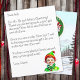 Voeg de naam van uw kind toe aan deze persoonlijke brief van de Kerstman. Schattigee stijl elf glimlachen met een geschenkdoos. Terug heeft een Noordpool bord met verlichte kerstverlichting en een besneeuwde achtergrond met een stempel van Santa en The North Pole.
