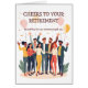 Vier het pensioen van een collega met deze persoonlijke afscheidskaart met een charmante illustratie van collega's die afscheid nemen. Het ontwerp bevat de bewerkbare tekst "Hoera voor uw pensioen", die kan worden aangepast met de naam of het persoonlijke bericht van de gepensioneerde. Perfect voor kantoor-afscheid, werkplekfeesten en pensioenfeesten, deze unieke kaart combineert warmte, humor en professionele stijl om hun uitzending extra speciaal te maken.