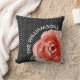 Gepersonaliseerde rode roze op zwart kussen