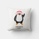 Gepersonaliseerde Schattigee kerstpinguïn in rood Kussen