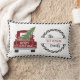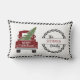 rode truck met vrolijk kerstgevoel. Feestelijk home decor kussen voor uw vakantie decoreren. Personaliseer met je familienaam. Een must have voor je kerstseizoen. Zwart & wit eenvoudige trim. 100% klanttevredenheid elke dag bij "Zazzle"