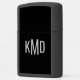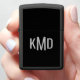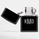 Monogram initialen in zilver op een aangepaste Zippo aansteker. Volledig bewerkbare tekst, inclusief letters, kleur, stijl, positie, enz. Andere beschikbare kleuren van het hoesje. Een handig gepersonaliseerd cadeau voor een geliefde, bruidsmeisje, baas of andere belangrijke persoon in je leven. Van 369Design. #CustomLighter #WeddingPartyGiftIdeas