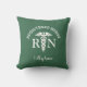 Decoreer met dit geregistreerde zure RN Green White Afstuderen Name Sierkussen. Het heeft een modern ontwerp met aanpasbare donkergroene achtergrondkleur en een wit kaduceus symbool met "RN" in het midden. De beroepstitel "Geregistreerde verpleger" wordt over het symbool gebogen. De naam is in trendy kalligrafiekmanuscript het schrijven. Het ontwerp is aan beide zijden van de kussen. KLIK DE OPTIE VAN DE SJABLOON PERSONALIZE EN GA NAAM IN