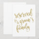 Een elegant, modern huwelijksbord met de tekst 'Gereserveerd voor de familie van de bruidegom' in een uitbundig script lettertype, de glinsterende textuur voegt een vrolijke en glamoureuze aanraking toe. De achtergrondkleur kan worden gepersonaliseerd volgens uw wensen en voorkeuren, neem contact met me op als u een speciale vraag heeft.