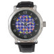 Een nautische vlaggen over kleurrijk patroon in dammen stijl gepresenteerd op een aangepaste mode horloge cadeau idee.