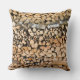 Gooi de kussen met gehakte houtblokken op een stapel die klaar is voor gebruik in een haard.