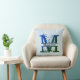 Fancy gespleten monogram "M" in blauw en groenen met silhouettes van fancy bloei en vlinders. Voeg je eigen naam toe als centrumtekst.