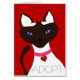 **Bedankt aan het personeel van Zazzle voor het toekennen van deze kaart aan het "Beste" lint van vandaag voor 4 maart 2012. ** De gestileerde Siamese kat op de rode voorkant van deze kaart is een zegel Point, wit met bruin gezicht, oren en staart, en draagt een roze kraag met een rood hart label dat ze haar het rollen noemt. Deze illustratie was geïnspireerd door het zoete kat Moira dat ik had aangenomen toen ze 17 was en haar eigenaar was overleden. Moira was bijna twee jaar bij me, en hoewel onze tijd samen kort was, leeft ze eeuwig op deze kaart, die aan haar geheugen gewijd is. Verkrijgbaar in twee formaten. Zoek andere objecten met Moira's afbeelding erop. De digitale kunst op deze kaart is copyright © Kathi Shotwell en is alleen beschikbaar via mij.