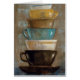 © Silvia Vassileva / Wilde Apple. Koffiebekers worden op elkaar gestapeld in aardkleuren. Het woord Latte kan bovenop het afbeelding worden gezien.