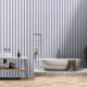 Gestreept patroon in grijs en lavendel behang