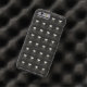 Gedrukt afbeelding van zwart leder met metalen deksels.