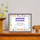 Introductie van de Geweldige Attitude Student Class Award, een perfecte manier om studenten te herkennen die positiviteit en enthousiasme belichamen! Deze in het oog springende prijs is voorzien van een leuk ontwerp dat een can-do-geest en een geweldige houding viert. Personaliseer het met de naam, datum en een speciale boodschap van de student om het echt memorabel te maken. Ideaal voor klaslokalen of buitenschoolse activiteiten, deze prijs inspireert studenten om hun positieve kijk te behouden en tegelijkertijd hun bijdragen aan een levendige leeromgeving te erkennen!