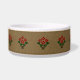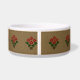 Vloeiende rode bloemen met groene bladeren in een bruine pot op een bruin mandje. Weave is computer gegenereerd en nep, maar het ziet er cool uit op dingen!